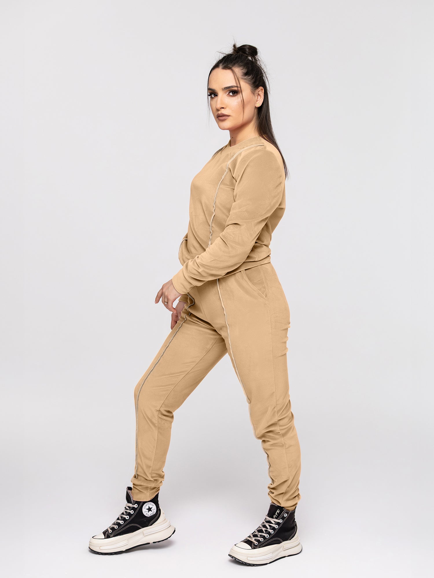 Acest trening din catifea premium este alegerea ideală atunci când îți dorești să te simți comod, dar și aranjată. Materialul este moale și are o textură fină.✨
